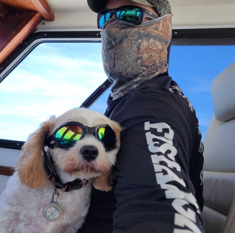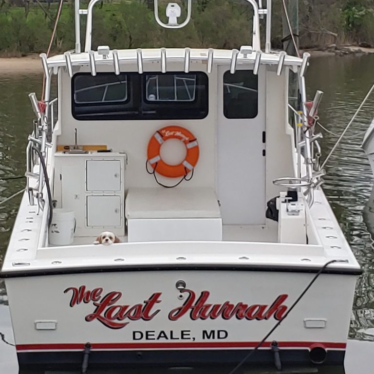 First mate and best friend, Shelby dog, assists Capt. Scott in all areas of the business.