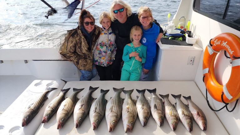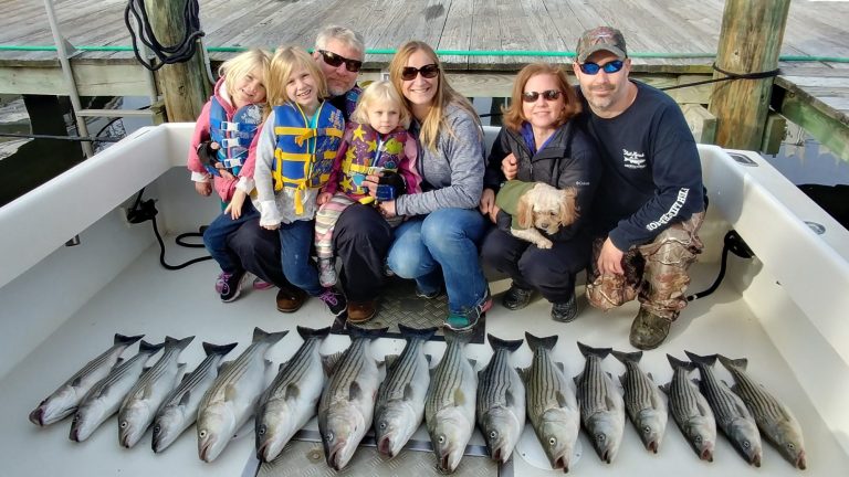 It is already mid-September, and time to book your fall fishing trip on the Chesapeake Bay. The Last Hurrah is booking up the rest of the Maryland season, which runs until December 10th. All indicators promise this fall to be one for the record books (and photo albums). The ‘Hurrah can take groups up to six for private charter. We run seven days a week, and provide all licenses, tackle, gear and ice. All you need to do is book, hook, and cook your catch. There are no age restrictions, and dogs are welcome on board. In fact, all dogs receive a complimentary toy, unlimited pets from the Captain, and all the treats that their parents will allow. So, make this autumn a memorable one by having a striped bass blast with us! We guarantee it is more fun than raking leaves, or Captain Scott will give you his own, personal leaf collection!