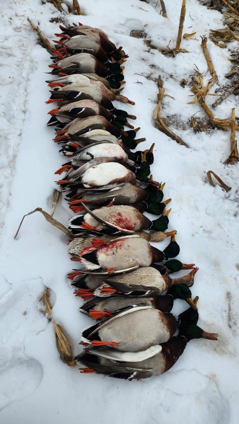 I purchased these decoys from Macks Prairie Wings in February of 2024 and was not disappointed. While I am a strong proponent of silhouette spreads, I always keep some high-quality, fully-flocked, full body geese among the ranks. This dozen decoy outfitter pack features head-to-tail, lifelike flocking, eight different poses, twelve, (twenty-four inch) motion stakes, and a twenty percent larger size than standard Lessers. This was a key selling point for me. Where I live, hunting leases are scarce, expensive, and usually prohibit driving vehicles out into the field. I frequently hunt solo and need to hand carry or sled decoys out to the pit. This “disco dozen” is the perfect size to mimic either Lesser or Greater Canada Geese, without the bulkiness and weight of standard full bodies. The gang is all there with 2 walkers, 2 stretch-neck feeders, 2 regular feeders, 2 picking feeders, a stub neck, a sentry, an open-mouthed caller, and a searcher. A 12-slotted bag with a shoulder strap is also included. The squad barely weighs 35 pounds and eats up only a fraction of the space that most full-sized honkers would. With easy transport and quick deployment, these decoys have become my favorite go-to for getting an extra dozen fully-flocked, motion decoys into my spread for late-season birds on sunny days. I believe that aside from stuffers, these are the pinnacle of realism.